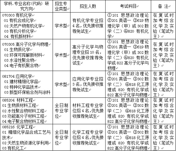 中国科学院广州化学研究所2015年硕士研究生招生专业目录