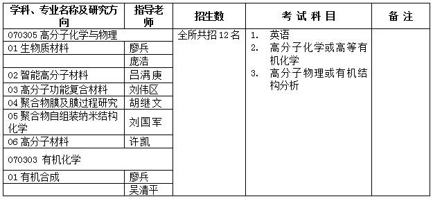 2015年中国科学院广州化学研究所博士招生专业目录